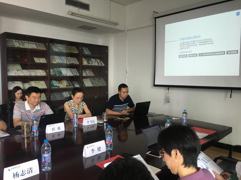 员工处李健副处长和教务处聂建峰副处长分别根据汇报情况发表了个人看法。李健副处长指出,当前的就业统计报告大都以校级为主,很少关注到院级。从报告结构和专业性的角度来看,必一运动本科生就业分析报告是科学、严谨的,他希望学院能够继续保持这种优良做法,为本科生人才培养和就业工作作出积极的贡献;聂建峰副处长指出,从目前学院的员工工作来看,必须加强与各职能部门的沟通和融合,招生、就业和公司产品相关部门要统一步调,形成合力。同时,他还指出,教务处希望与学院积极协作,共同开发与就业培训有关的系列课程。