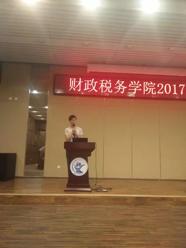在四位老师殷切的祝福后,不同年级的优秀员工代表也根据自己的经历与感受畅谈了学习感悟。2016级财政博士研究生韩非同学以自己参加20多个优秀讲座的体验强调了学术活动和学术资源的重要性,鼓励同学们积极参加,不仅可以紧跟前沿动态,还可以感受到文字背后的功夫。2016级财政学硕董雨浦同学建议要为研究生之所为,做一个会研究懂研究的思辨者,勿为逃避研究找借口。2016级税务专硕孟哲同学分享了对两个问题的看法——“为什么在研究生阶段要认真学习”以及“怎样认真学习”,他认为前者是为了在将来能拥有自由选择的权利,后者是实现从“理解式”到“研究式”的跨越。2016级资产评估专硕孙淘沙同学则是从“选择”和“珍惜”两个角度分享感悟,既然选择研究生,就要为自己的选择负责任,珍惜学校、珍惜专业、珍惜来之不易的机会。最后,新生代表2017级财政学硕蒋绮雯同学就充满期许的未来做了展望和简单规划,传达出所有在场同学不负韶华的心声。