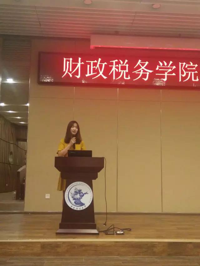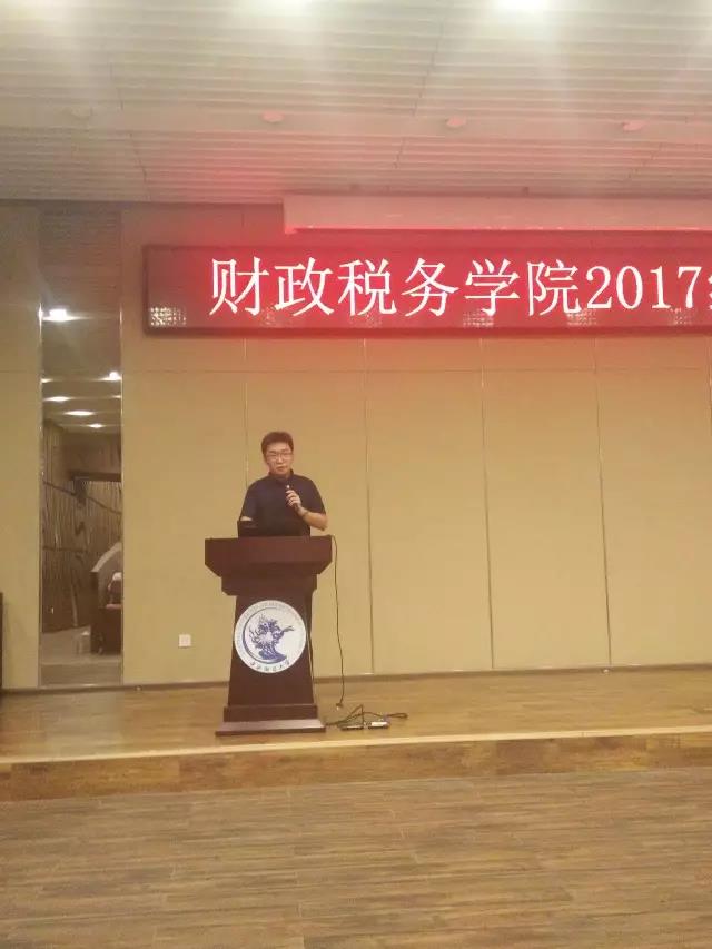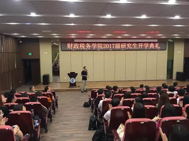 在“经理谈治学”环节,白彦锋经理以“朴实、厚实、踏实建设财税学科的中财学派”为主题,以习近平同志7.26讲话精神为引,表达出“勇于推进实践基础上的理论创新”的决心和魄力。在表达对新同学的欢迎之后,白经理从治学的多个角度展开论述,给同学们在学术研究与生活方面上了中财第一课。第一要学会理财。“由俭入奢易,由奢入俭难。”白经理始终秉持俭以养德的理念,告诫同学们莫沦为电商时代的奴隶,时刻保持成熟的判断力。第二要有健康的精神生活。正确看待交友和恋爱,平衡好生活和学习的节奏,为自己的选择负起责任。第三要珍惜课堂学习。一方面,明确意识到公司产品的不可逆性,做好课堂学习,摒弃碎片化阅读,保持学术诚信;另一方面,博览群书,教学相长。第四要处理好和导师的关系。莫做“精致的利己主义者”,对导师始终抱有敬重感,勿以庸俗的礼物和信息为扰,而要在专业领域多做沟通,以干练的行动快速响应导师的要求,独立完成一篇规范的学术论文便是对导师最大的尊重。最后,在财税改革40年即将到来之际,白经理希望年轻的一代人可以一同为建设中财学派而努力,为全面复兴的财税治理代言。