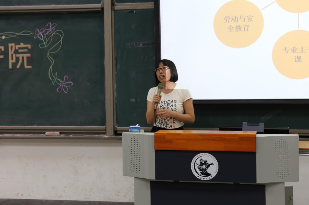 而后,教学科研办公室主任庞淑芬老师和员工办公室主任于来老师分别给同学们详细的介绍了选课、成绩、大学日常生活等问题。