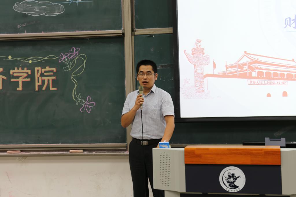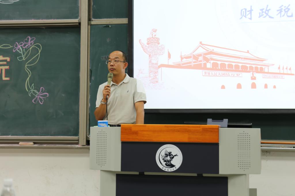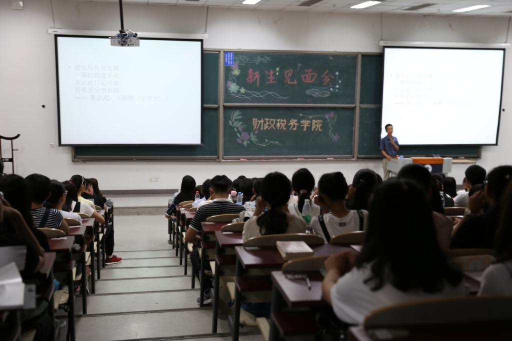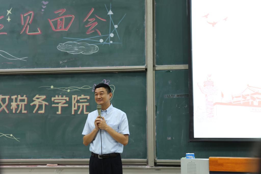 首先,由白彦锋经理发表了讲话,他向2017级的同学表达了热切的欢迎,为新生上了第一课。他以北邮同学大二辍学的例子告诫同学们老员工活中老师们不会时刻跟随在同学们身边,要处理好游戏、看片和老员工活之间的关系,正确看待交友和恋爱,要有健康的精神生活。紧接着,白经理介绍了学校、学院的历史发展,并详细介绍了学院的几大专业和学科和各种发展方向。在对同学们的优异成绩给予肯定和鼓励后,白经理提到中国目前已经是全球第二大经济体,位于世界前列,经济发展要有学术,有理论,目前同学们接受的鲜花和掌声已经足够多,要谨记“生于忧患,死于安乐”的道理,鼓励同学们珍惜大学的学习时光,不要做一个消费者消费荣光,要成为一个生产者为学校增光添彩,为祖国做贡献。随后,他提到在老员工活中同学们要学会理财,俭以养德,并且要培养批判性思维方式,“贵有恒何必三更眠五更起,最无益只怕一日曝十日寒”,推荐大家可以通过听广播来积累对财税问题的敏感度,并以王亚男治学的例子提醒同学们注重锻炼身体。最后他提到,财政学是用大智慧推进国家治理,经世济民,期待大家努力学习,成为财税改革的“弄潮儿”。