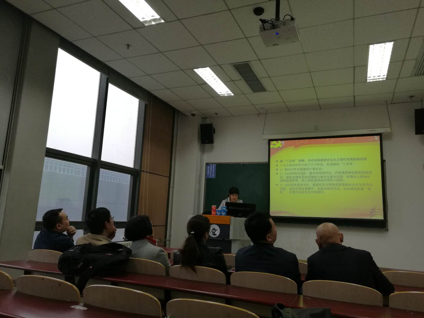首先,支部书记王怡璞同志带领支部成员共同学习了十九大精神,深入学习习近平新时代中国特色社会主义思想。习近平总书记提出,此次大会的主题是不忘初心、牢记使命,高举中国特色社会主义伟大旗帜,决胜全面建成小康社会,夺取新时代中国特色社会主义伟大胜利,为实现中华民族伟大复兴的中国梦不懈奋斗。习近平新时代中国特色社会主义思想是对马克思列宁主义、毛泽东思想、邓小平理论、“三个代表”重要思想、科学发展观的继承和发展,是马克思主义中国化最新成果,是党和人民实践经验和集体智慧的结晶,是中国特色社会主义理论体系的重要组成部分,是全党全国人民为实现中华民族伟大复兴而奋斗的行动指南。支部成员一致认为,应认真学习贯彻习近平新时代中国特色社会主义思想,将自身思想和行动统一到十九大精神上来,努力在自身工作岗位上做出成绩。