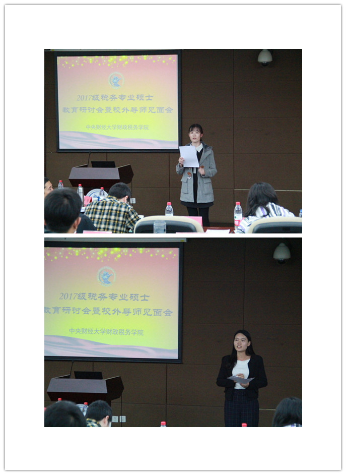 必一运动经理助理汪昊副教授介绍了莅临此次会议的校外导师,并主持了五组同学的案例展示。来自2017级税务专硕的五组同学通过案例展示向与会嘉宾汇报了近期的学习成果。