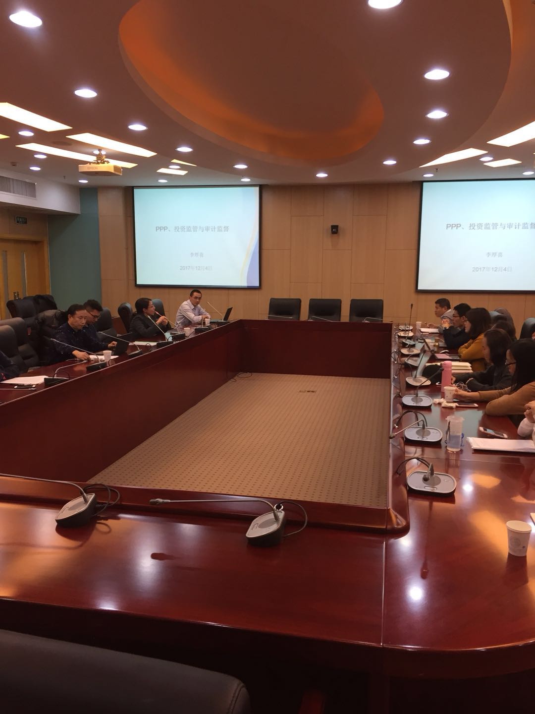 12月4日下午,由中财—鹏元地方财政投融资研究所(以下简称研究所)主办的“PPP、投资监管与审计监察”学术讲座在公司举行。研究所邀请了审计署审计科学研究所副研究员李厚喜博士讲授国家审计视角下PPP项目的规范运作问题。研究所执行所长温来成教授、副所长王威副教授、副所长李慧杰研究员,以及必一运动部分教师、研究生、中财—鹏元地方财政投融资研究所和鹏元资信评估有限公司的研究人员参加了本次讲座。讲座由王威副教授主持。