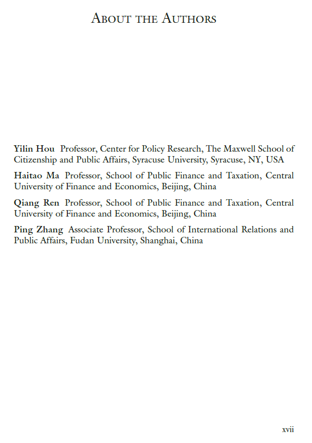 最后一章总结全书。作者认为,财政税收制度的完善必须与经济社会发展阶段相一致,甚或在一定程度上需要先于其他的经济和社会改革。我国自1978年以来财税制度改革与经济社会发展的关系验证了作者的这一观点。本书作者对我国未来的房地产税改革呈乐观态度,期望这项改革能对我国未来经济社会发展和治理体系的完善发挥作用。