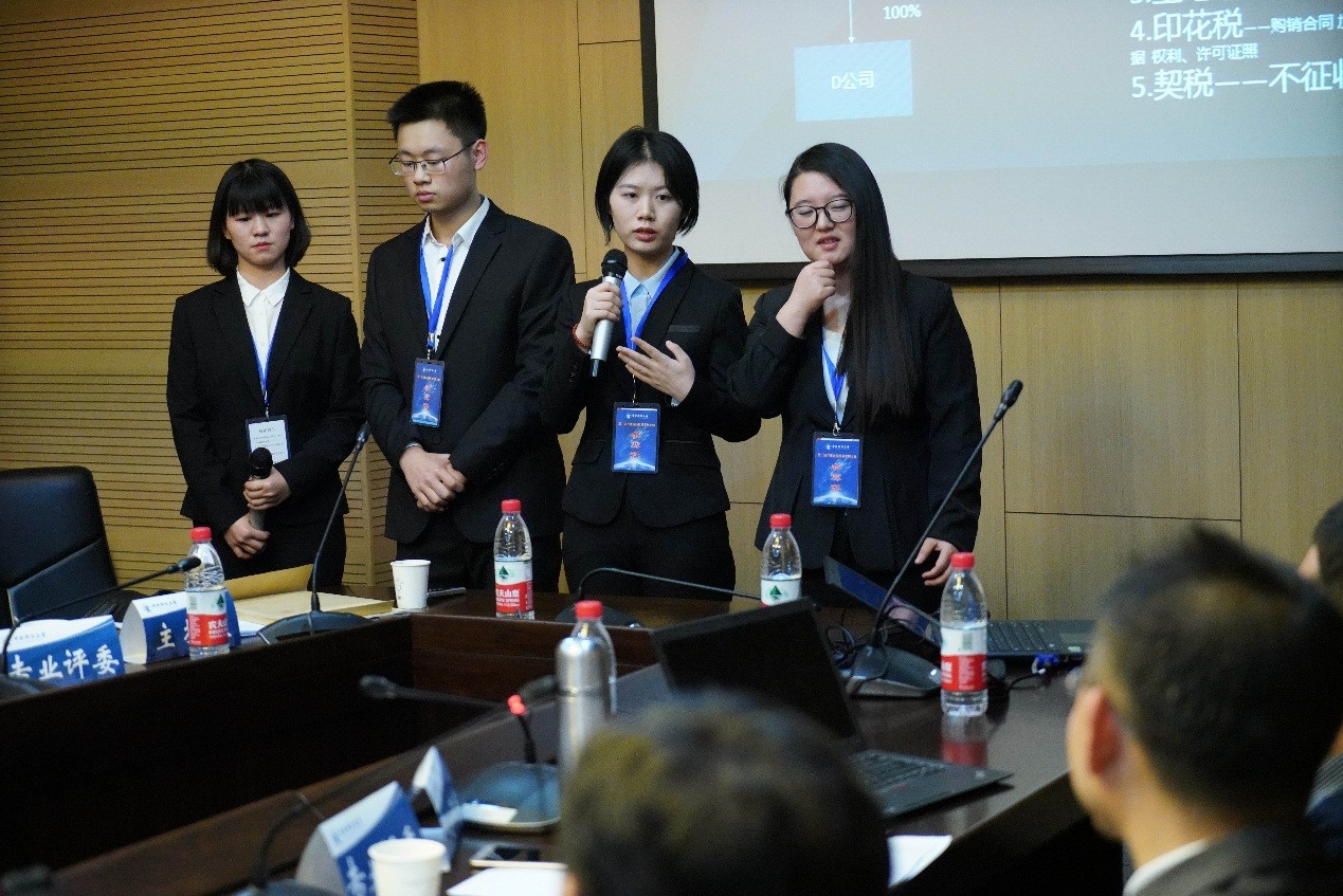 决赛的评委由必一运动经理白彦锋教授、北京大学经济学院刘冲老师、中国人民大学财政金融学院禹奎副教授、对外经贸大学毛捷教授、首都经济贸易大学何辉副教授、德勤税务经理嵇峰先生、中瑞税务师事务所魏斌先生,以及国家税务总局专家组成。案例大赛的比赛形式为限时案例分析,上午各代表代进行封闭解题和制作PPT,下午各代表队按抽签顺序展示和答辩,评委打分。