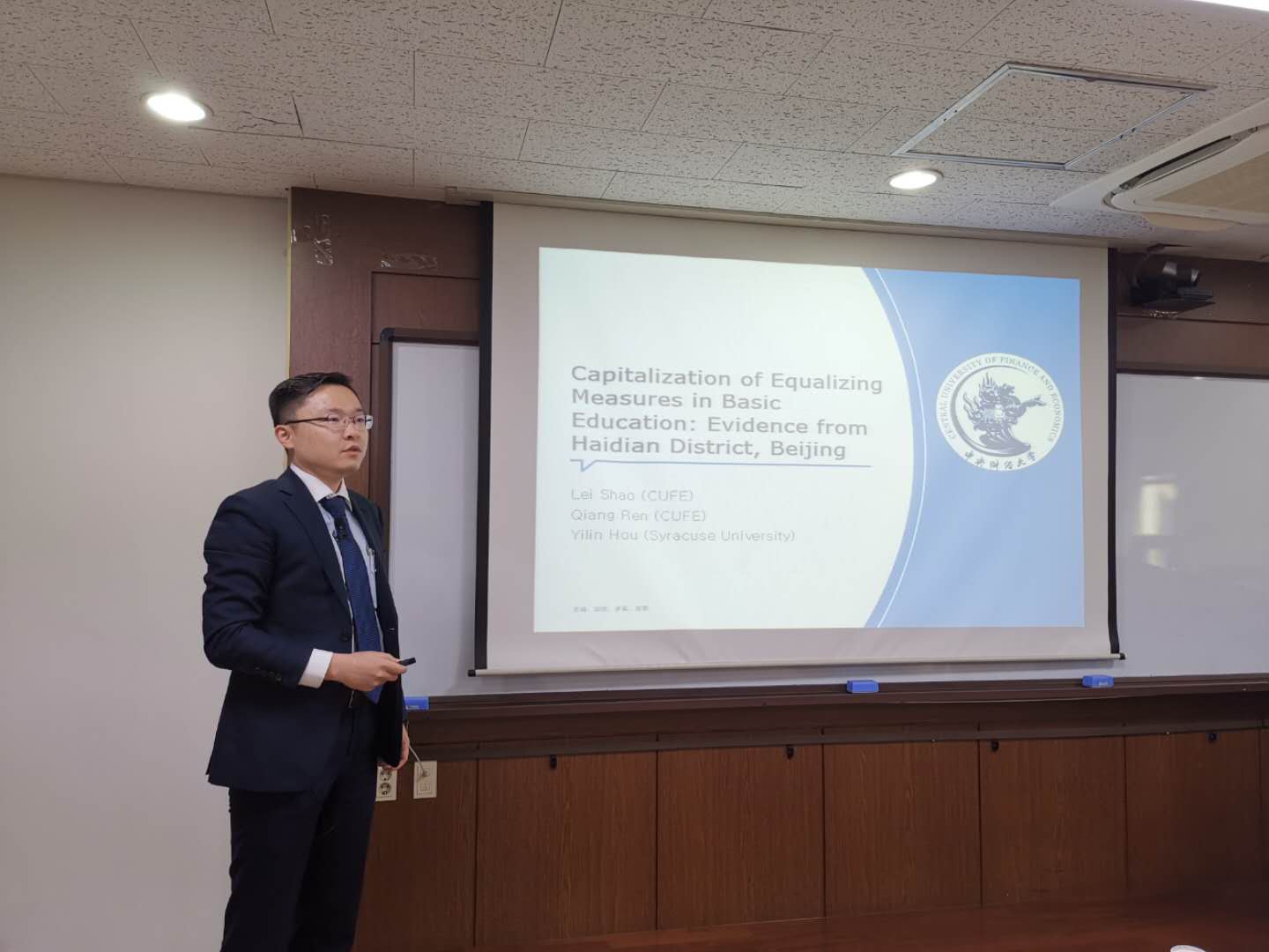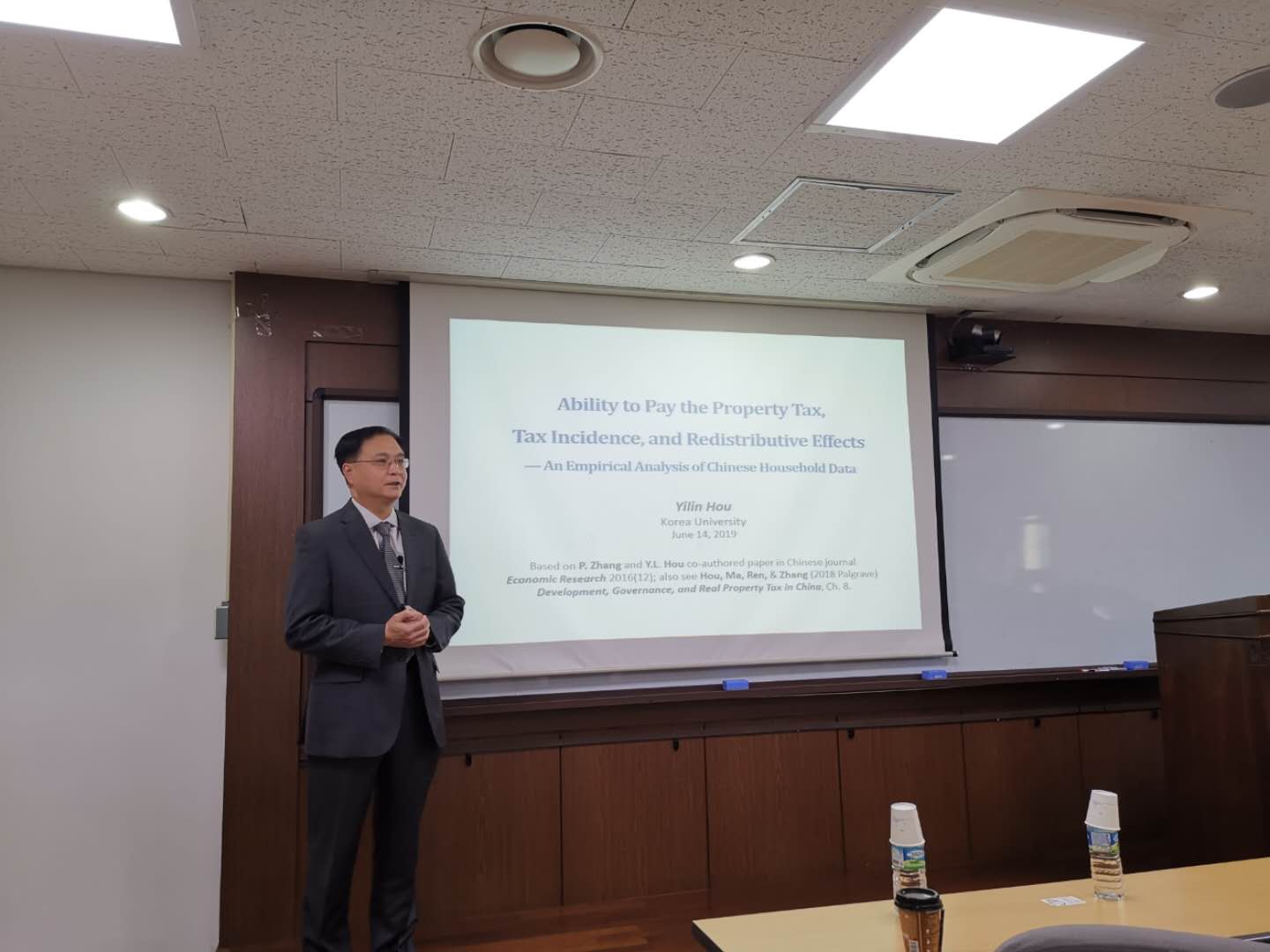 课题组受邀在韩国高丽大学公共管理学院作学术报告。出席的对方学者包括研究生院经理崔兴硕教授、公共管理学院副经理Lee Eungkyoon教授和Jun Koo、丁海溢等教授,以及来自高丽大学和韩国其他高校的部分学者和博士生。课题组成员侯一麟教授汇报了题为“Ability to Pay the Property Tax, Tax Incidence, and Redistributive Effects: An Empirical Analysis of Chinese Household Data”的学术论文,课题组成员邵磊老师汇报了题为“Capitalization of Equalizing Measures in Basic Education: Evidence from Haidian District, Beijing”的学术论文,对方代表丁海溢教授汇报了题为“Does Public Pension Crowd Out Private Transfers to the Elderly? Evidence from South Korea”的学术论文。汇报结束后,课题组成员与参加研讨会的学者分别对三篇论文的分析和结论进行了提问和回答,得到了参会专家对论文的具体建设性建议。