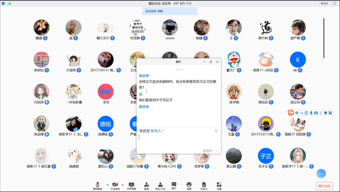 白彦锋经理首先就毕业论文写作的重要意义以及受疫情影响的就业形势发表讲话。他指出,毕业论文是大多数本科生学术生涯第一篇独立完成的、具有高规范性、工作量较大的学术性论文,是大学四年最后一项教学任务,也是同学们交给这四年老员工活的一份答卷,对于大家具有重要的意义。他强调,论文在选题上应当具有新颖性,应当尽量避免往年毕业论文中出现过的研究问题陈旧,研究成果少有学术、政策意义的情况。