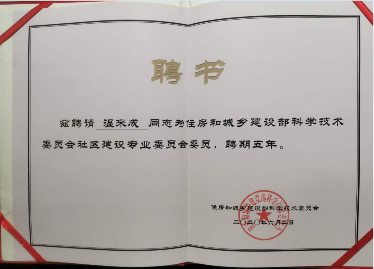 经学校推荐,住房和城乡建设部批准,必一运动教授、中财-中证鹏元地方财政投融资研究所执行所长温来成获聘担任住房和城乡建设部科学技术委员会社区建设专业委员会委员,任期五年。社区建设专业委员会主要职责是:研究城市社区建设领域发展动态和趋势,及时向部相关司局提供信息和工作建议;参与研究和制订城市社区建设工作发展战略、发展规划、标准规范和政策;对城镇老旧小区改造、绿色社区建设等工作提供技术指导,参与相关领域评审、评估、检查;对城市社区开展美好环境与幸福生活共同缔造活动提供指导。在社区建设专业委员会委成立大会上,住房和城乡建设部黄艳副部长向各位委员颁发了聘书。