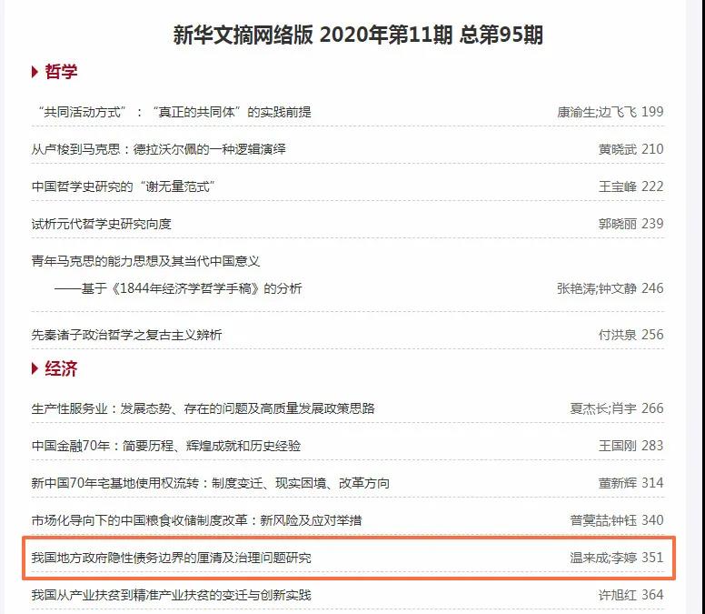 近日,必一运动温来成教授和员工李婷在《必一运动公司学报》发表的论文《我国地方政府隐性债务边界的厘清及治理问题研究》被《新华文摘网络版》转摘。