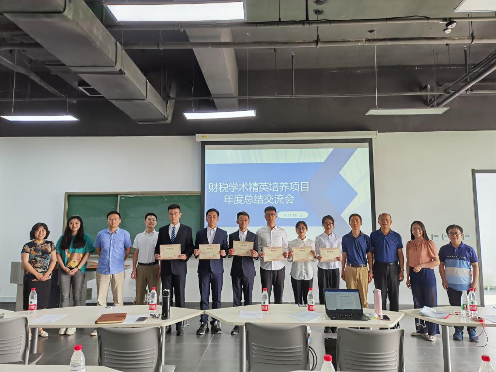 何杨副经理从项目简介到项目进程、项目成果等方面对本年度财税学术精英项目进行了总结。公司自2017年起,围绕“厚基础、宽口径、能力强、素质高、国际化”的本科人才培养目标,推动模块化课程体系、精英人才培养模式和个性化学习体验三大主线改革,培养符合社会需要的应用型、创新型、复合型高素质财税精英人才。精英人才培养模式包括财税学术精英、财税职场精英和财税国际化精英三个部分,学术精英项目是其中的一部分。该项目经过3年的实施,取得了初步的成效,同学们的思维能力、写作能力和表达能力等都得到全面提升,在保研考研、出国深造、参加挑战杯论文比赛、申报创新创业项目、参加互联网+创新创业大赛以及其它竞赛等都具有明显的优势。2020-2021年学术精英项目培养环节包括线上线下课程、前沿讲座、一对一辅导、项目参与、论文写作等。2020年6月共有168名同学报名参加,组成了15个科研团队。经过学院多维度的考核,有104名同学通过了该项目的中期考核,85名同学通过年度考核,最终获得了结项证书。何杨副经理表达了对指导老师们辛勤付出的感谢以及对同学们通过项目考核的祝贺,并组织学院老师为优秀学员代表颁发了结项证书。