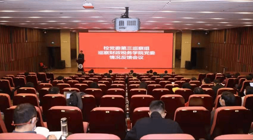 吕杰代表巡察组反馈巡察意见,提出整改建议,强调要强化理论学习,全面推进立德树人;要提高责任意识,落实全面从严治党;要提高政治站位,夯实基层党建工作;要健全问责机制,完善整改长效机制。樊勇代表领导班子表态发言,表示要把教育部巡视整改和学校巡察整改作为一项重要政治任务抓好抓实;要全面对标学校巡察整改要求,扎实推进整改工作;要全面贯彻党的教育方针,深入落实立德树人根本任务;要紧密围绕学校特色鲜明的世界一流大学建设目标,以整改成果促进财政、税务、资产评估学科点和专业建设的高质量发展。