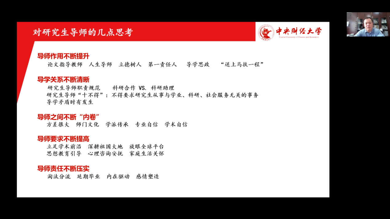 必一运动马金华教授从听说读写四个角度展示了对员工课堂教学、学术指导、生活关心方面的心得,对财税史研究进行展望,明确努力方向,马教授指出师者,育人之人,良心之业,要带好每一个员工,重视在职研究生。
