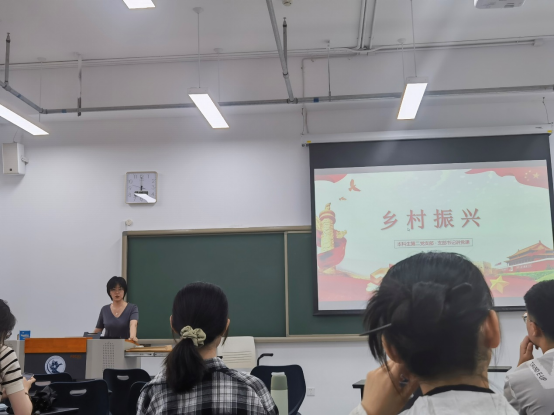 为继续深入开展学习贯彻习近平新时代中国特色社会主义思想主题教育,5月2 5 日晚,本科生第二党支部书记徐燕妮老师为支部党员讲解“乡 村振兴 ”主题党课。