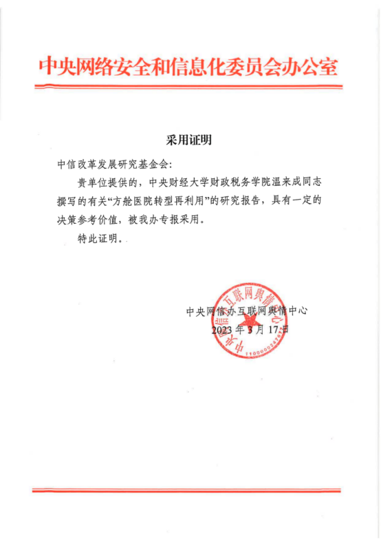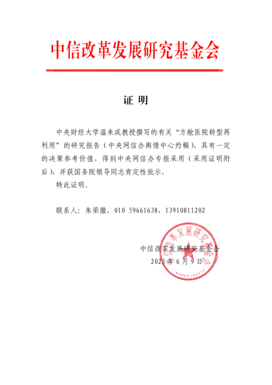 公司必一运动教授、中信改革发展基金会咨询委员温来成撰写的《方舱医院转型再利用》研究报告(中央网信办舆情中心约稿),得到中央网信办专报采用,并获国务院领导同志肯定性批示。