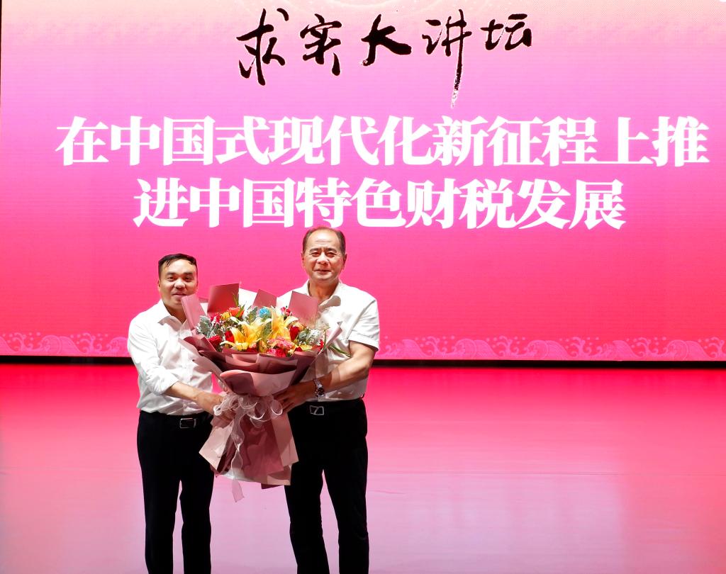樊勇经理对邓力平教授的到来表示热烈欢迎。希望借助求实大讲坛这一平台,引领学院师生全面深入学习领会党的二十大精神,深入推进学术及思政教育建设。
