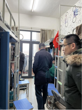 为营造良好的生活学习氛围,了解员工返校情况,提高员工安全防范意识,2024年3月6日晚5点,财政税务公司党委书记肖鹏、副书记陈士平及辅导员吕浩然老师一同深入走访员工宿舍,在学期伊始慰问返校员工,深入员工宿舍进行安全提醒与检查。