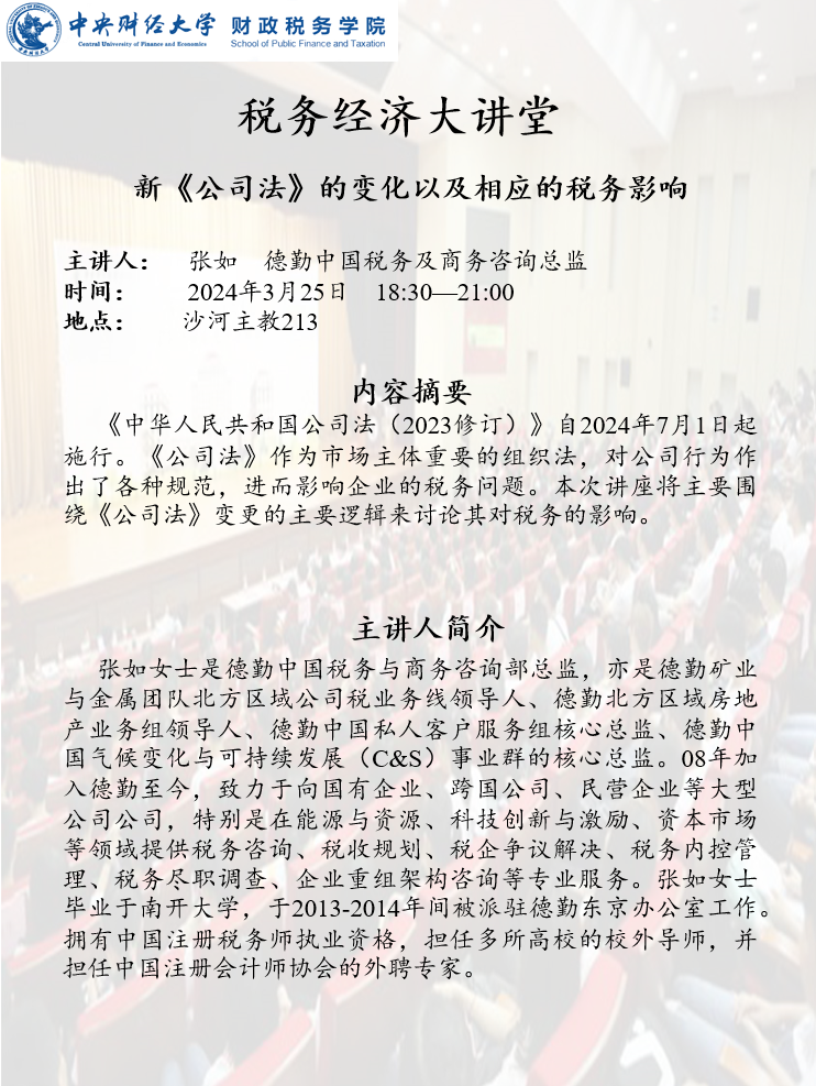 【税务经济大讲堂】新《公司法》的变化以及相应的税务影响