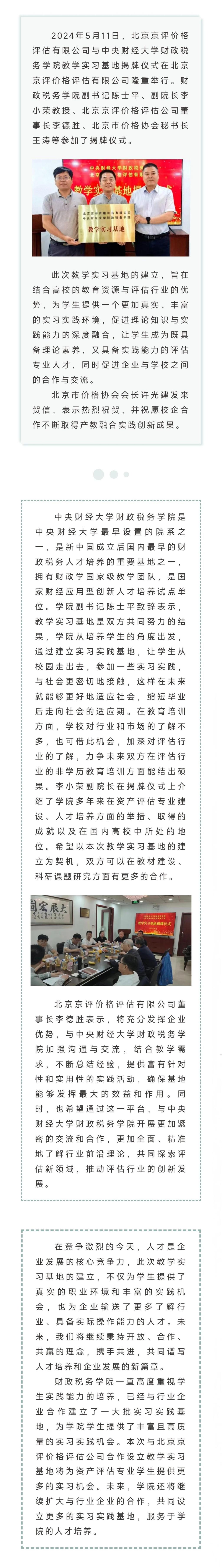 必一运动与北京京评价格评估有限公司举办教学实习基地揭牌仪式