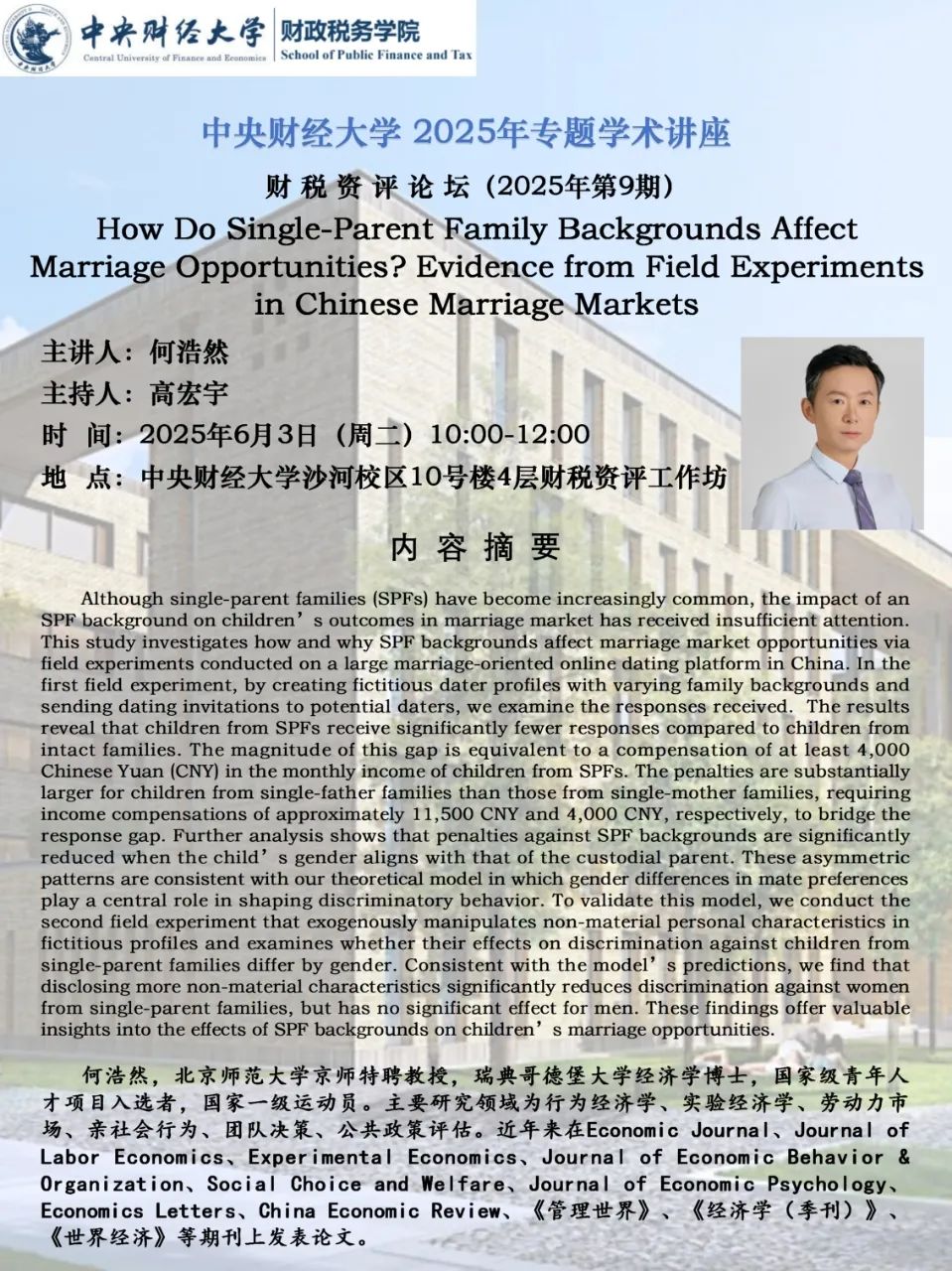 【财税资评论坛】单亲家庭背景如何影响婚姻机会?来自中国婚姻市场的实地实验证据