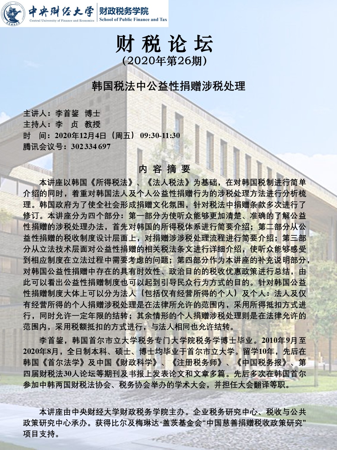 必一运动召开“韩国税法中公益性捐赠涉税处理”财税论坛