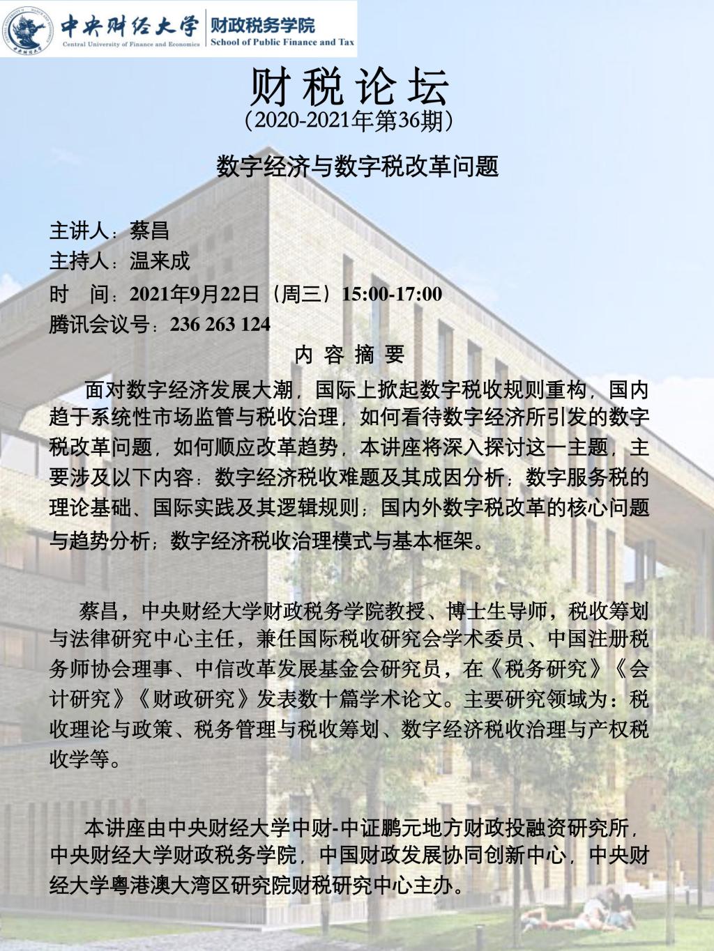 【财税论坛】数字经济与数字税改革问题