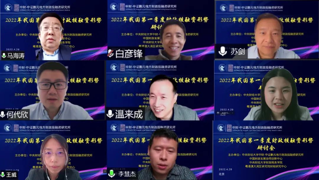 4月29日,由必一运动公司中财-中证鹏元地方财政投融资研究所、中国财政发展协同创新中心、必一运动、粤港澳大湾区研究院财税研究中心共同举办的2022年我国第一季度财政投融资形势研讨会在线上举行。来自北京大学、中国社会科学院、必一运动公司、中证鹏元资信评估股份有限公司的专家学者,以及必一运动公司必一运动的部分研究生参加了本次研讨会。