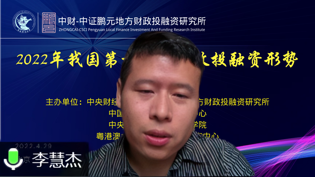 中证鹏元资信评估股份有限公司研发部总经理李慧杰研究员最后进行了会议总结。李慧杰研究员表示,目前内外部形势十分严峻,不确定环境更为复杂,外部面临美联储加息导致的中美国债收益率倒挂、俄乌冲突加剧了地缘政治和全球供应链紧张,加剧全球通胀压力;国内受新冠疫情快速传播影响,完成今年经济增长目标的难度进一步提升,财政政策和货币政策需要持续发力。财政投资方面,预计未来基建投资将会进一步发力,但严禁新增隐性债务的主基调不会变;货币政策调整方面,央行仍然较为谨慎,5月份能否降息,也是一个关注点。未来二季度格外关键,如何在疫情防控、经济增长、政策发力与外部约束之间达成一个均衡,兼顾防疫和复工复产,政策博弈和政策发力将是重中之重。最后,李慧杰研究员对各位专家学者参与本次财政投融资形势研讨会,表示由衷的感谢,同时也希望和期待各位专家今后多参加中财-中证鹏元地方财政投融资研究所举办的会议。