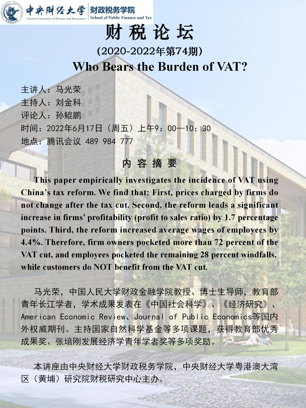 【财税论坛】Who Bears the Burden of VAT?