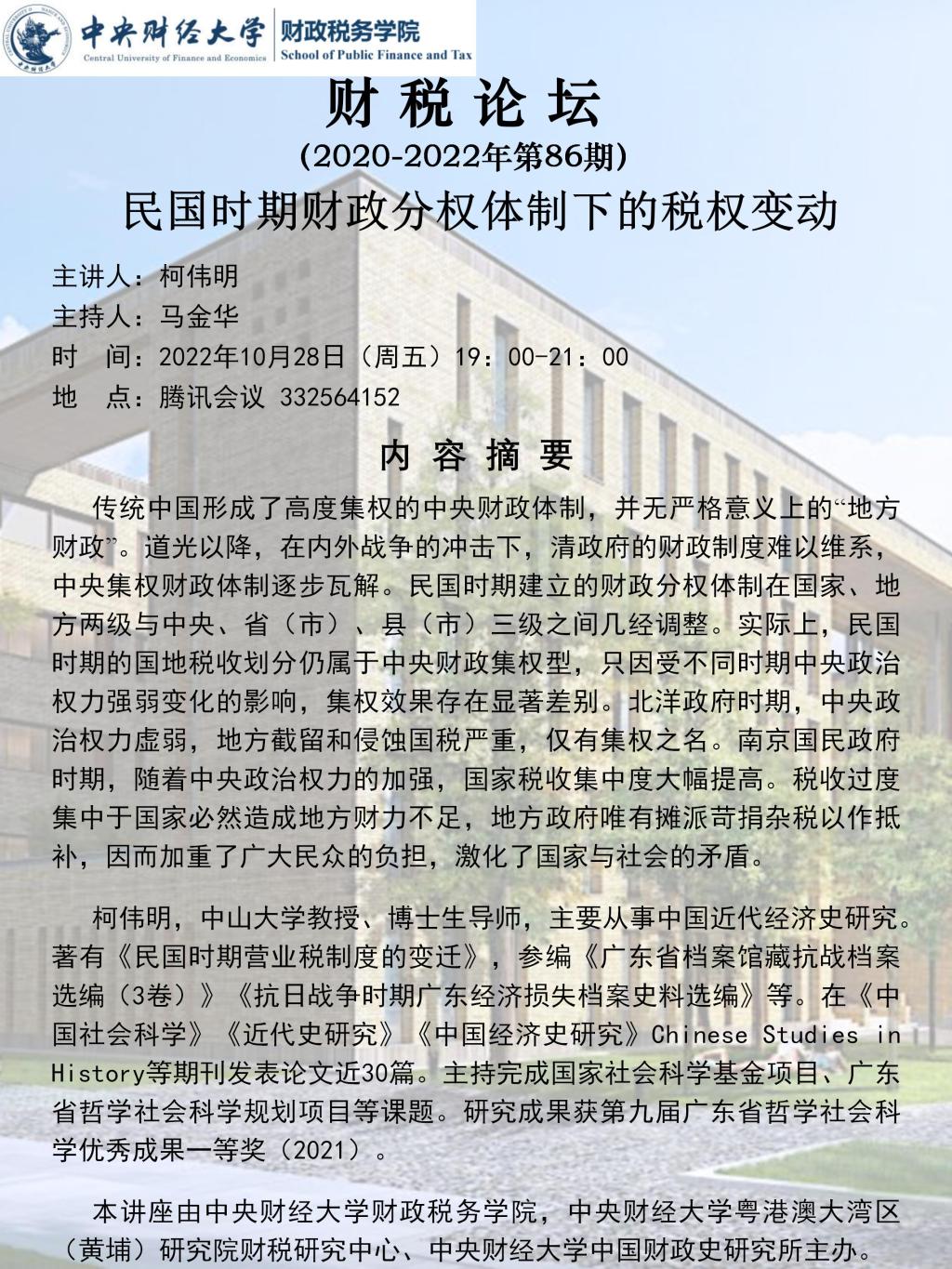 必一运动举办“民国时期财政分权体制下的税权变动”学术讲座