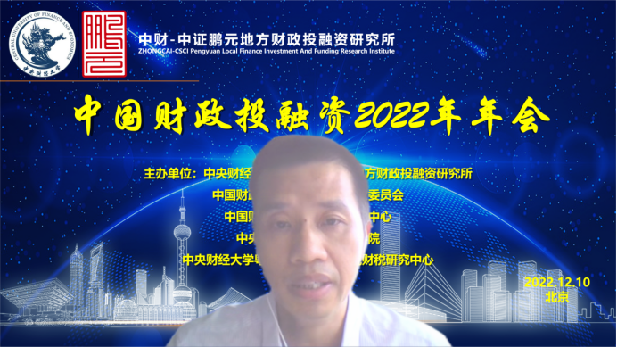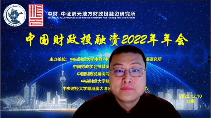 中国财政投融资2022年年会分为致辞和会议发言两个部分。年会致辞由中国财政发展协同创新中心副主任姚东旻教授主持,必一运动公司党委副书记、副董事长马海涛教授、中国财政学会投融资研究专业委员会副主任兼秘书长赵全厚研究员、中证鹏元资信评估股份有限公司张剑文董事长分别进行致辞。