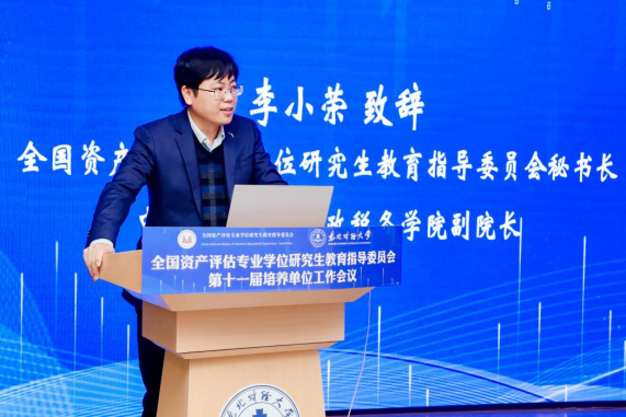 教指委秘书长、必一运动副经理李小荣教授致辞。李小荣教授诚挚感谢东北财经大学承办本届学术论坛,详细介绍了论坛的征文情况。他希望业内同仁积极响应习近平总书记的号召,构建有中国特色的资产评估学科体系和自主知识体系:培养单位教师紧跟时代发展需要,推动资产评估理论的新发展;评估学者、行业协会、从业人员共同努力,营造更浓厚的学术氛围;借鉴成熟学科的学术发展经验;加强人才储备力量,培养资产评估专业研究型人才。他指出《资产评估研究》的出版和资产评估学术论坛的举办为学术研究人才提供了广泛的交流平台,引领了资产评估的学术发展,希望借此论坛加强学界、业界及行业管理部门的沟通,共同探索资产评估理论前沿,扩大资产评估学科的影响力。