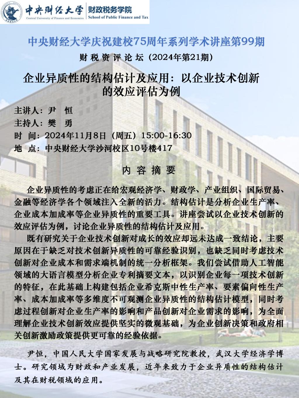 【财税资评论坛】企业异质性的结构估计及应用:以企业技术创新的效应评估为例