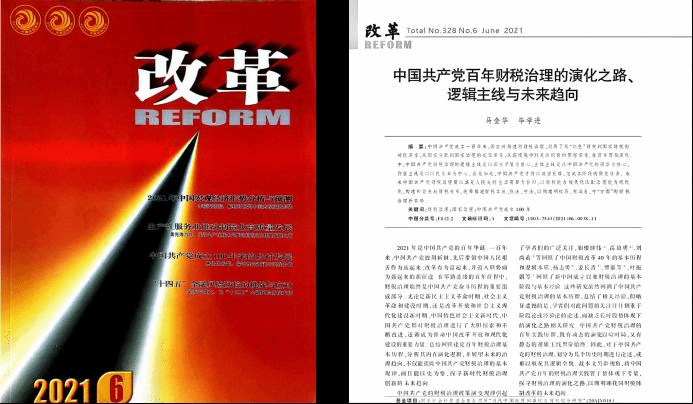 公司马金华教授、2020级博士研究生毕学进在《改革》2021年第6期发表《中国共产党百年财税治理的演化之路、逻辑主线与未来趋向》一文。
