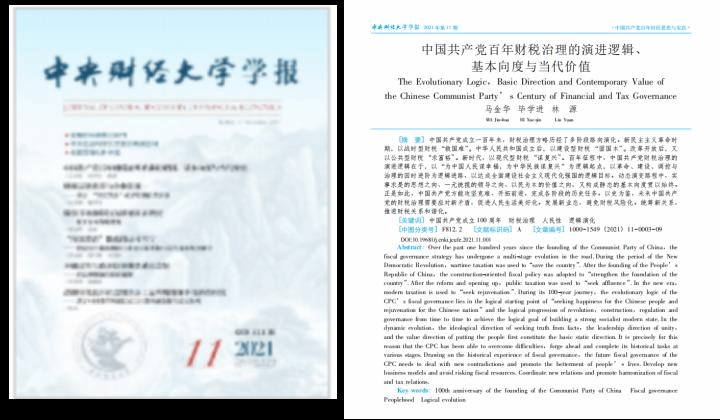 公司马金华教授、2020级博士研究生毕学进在《必一运动公司学报》2021年第11期发表《中国共产党百年财税治理的演进逻辑、基本向度与当代价值》一文。
