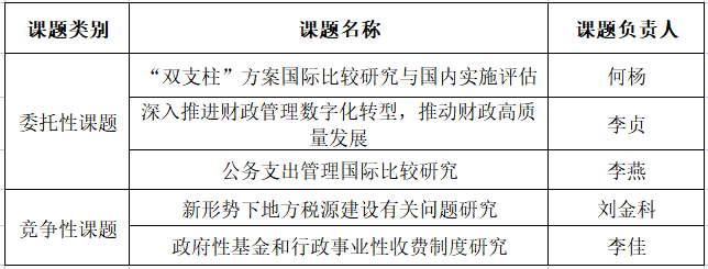 近日,财政部2023年部省共建联合研究课题评审结果揭晓。2023年部省共建联合研究课题共设置课题27项,其中,委托性研究课题17项,竞争性研究课题10项。公司何杨教授、李贞教授、李燕教授、刘金科副教授、李佳副教授申报的5项课题获批立项,其中委托性课题3项,竞争性课题2项,占公司总中标课题总数的50%以上,研究领域涉及国际税收、财政管理、数字财政、财源建设、非税收入管理等。具体中标情况如下: