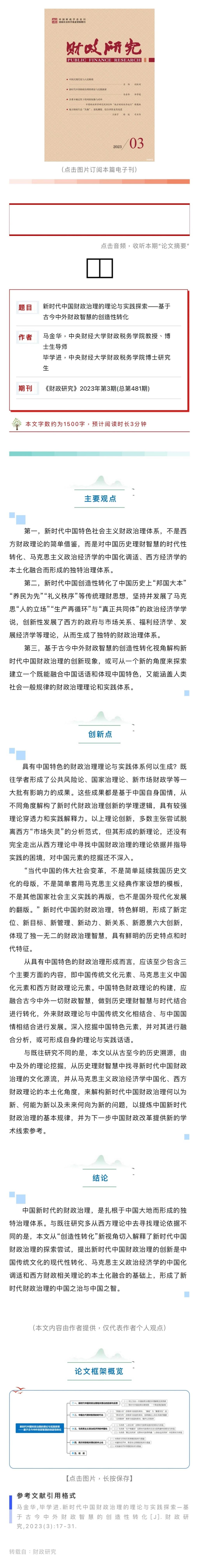《财政研究》刊发公司马金华教授财政基础理论研究论文:新时代中国财政治理的理论与实践探索——基于古今中外财政智慧的创造性转化