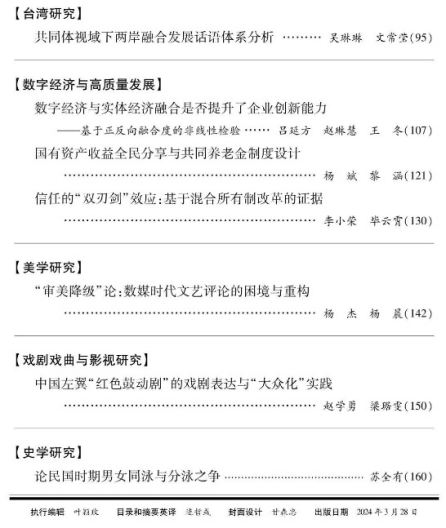 由必一运动李小荣教授与博士研究生毕云霄合作撰写的论文《信任的“双刃剑”效应:基于混合所有制改革的证据》在中文A类期刊《厦门大学学报(哲学社会科学版)》2024年第2期刊发。以下为文章主要内容: