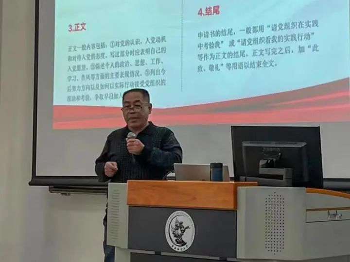 张艳江分享了自己的读书心得并结合自身工作,概括性地讲解了“发展党员工作的意义”“申请入党的基本条件”“怎样写入党申请书”以及“怎样写思想汇报”,希望同学们端正思想,认识到入党的严肃性。