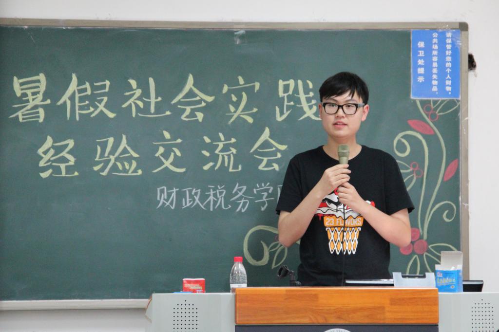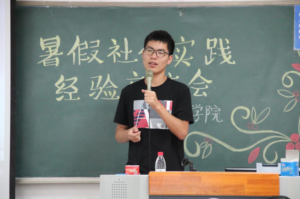 第一位分享团队经验的是税收16的杨宇轩同学。在这次暑假社会实践活动中,作为校级普通标的队长,他带领他的团队走访了北京,内蒙古,河北三省,参观了北工大附属中学,国家博物馆,抗日战争纪念馆多地,和工作人员与员工密切交流,虽然经历了活动开展过程中的一系列的困难,但最终仍取得了丰硕的实践成果。从实践准备,到撰写标书,再到实践开展,以及最后的撰写报告,他们用自己的一步一步的实践经历告诉我们:只有踏踏实实的努力,才能换得成功的硕果。