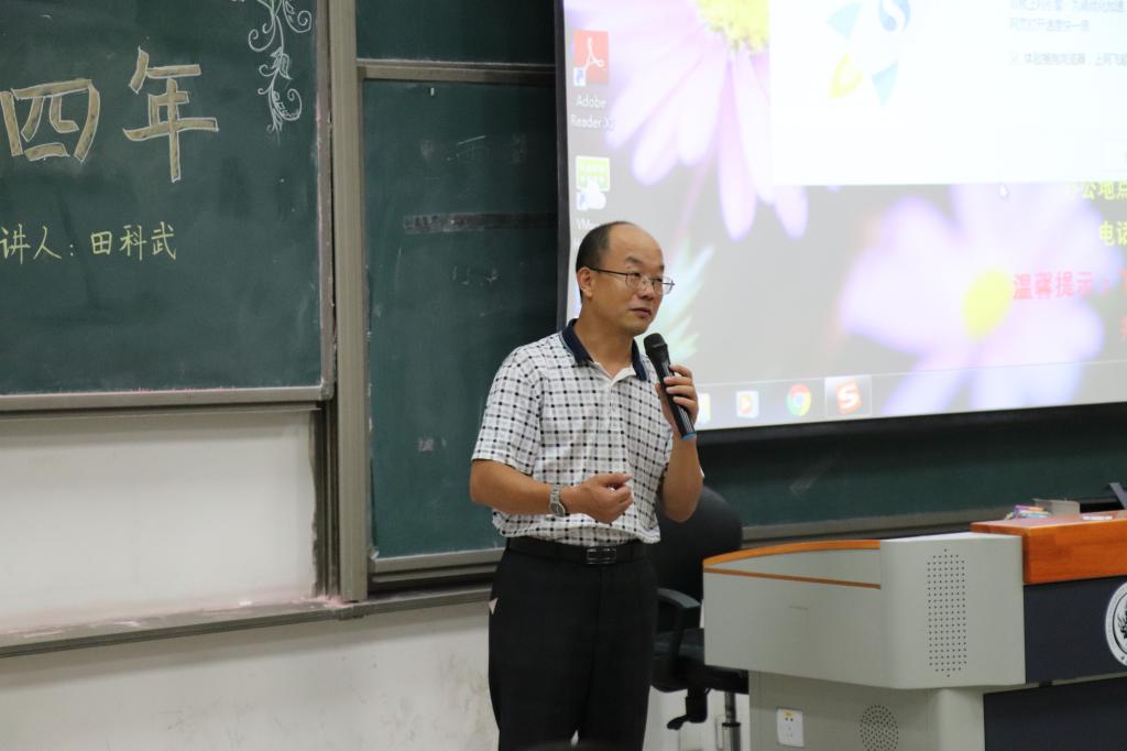 在讲座的第二部分,田科武先生以精炼的语言,提出了他给大学新生的三点建议。第一点是老员工要有理想,有激情,有情怀。他以自己大学期间在学术等方面的宏伟理想为例,说明了胸襟和眼界的重要性,也批评了当今社会许多老员工兴趣匮乏、庸庸碌碌的生活状态。第二点建议是要以学习为主,活动为辅,潜心致学,保持自己的学术热情。最后是要认真对待大学期间的每一件事,每一个人,收获自己的朋友和朋友圈。