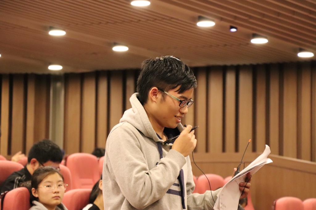 三位员工介绍完后,便开始了提问环节。开始同学们还比较拘谨,后来在三位员工和宋立岩书记的鼓励下,同学们逐渐变得踊跃起来。有一名大一的新生提问,如何度过刚进入大学的迷茫期。牛安文学长表示,刚刚进入大学,迷茫是在所难免的。最重要的是多交流,无论是和老师、家长亦或是员工,要将自己的情绪表达出来。在方向不明确的时候,要踏实做好手头的事情,自然而然就会逐渐明了前进的方向。同时,牛安文学长表示,一定要清楚对一个人来说最重要的是开心和幸福。一位大三的同学提问如何才能获得像台上三位员工一样的成功。李锴学长做出了详细的解答。首先,要有扎实的业务。个人能力不过关,一切都是空谈。其次,大学期间要和舍友、同学及老师和睦相处。多帮助他人,培养良好的人际交往能力。最后,一定要把握好机会。机会来临的时候不要让它错过。