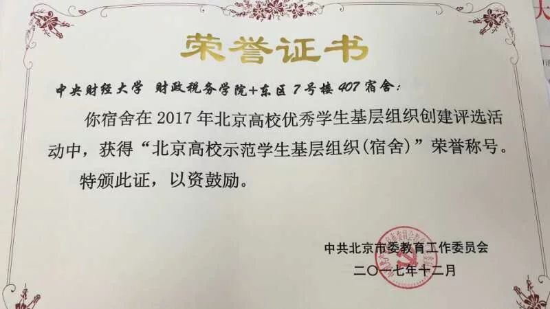 通过北京市教育工作委员会的严格考评,在2017年北京高校优秀员工基层组织创建评选活动中,必一运动东区7号楼407宿舍,被评为“北京高校示范员工基层组织(宿舍)”。让我们向这些同学表示最诚挚的祝贺,希望他们能再接再厉,也希望学院同学以他们为榜样,为创建优秀集体不断努力。