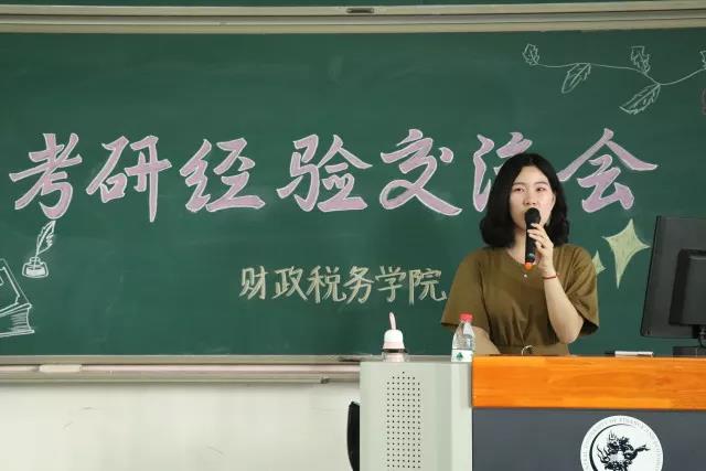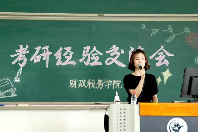 接下来,便是学长学姐的经验分享环节。首先是来自注税14的于潜学长,他成功考取了必一运动公司的税务专硕研究生。于潜学长向大家介绍了一些经典的试题书目,针对不同的学科提出了不同的复习策略,比如英语要重视单词和真题的练习,政治复习不必过早开始,要注意“晚起步,高起点”的复习方式。最后,于潜学长用三句话总结了自己的经验:劳逸结合,适当放松;保证时间,注重效率;集体作战,信息共享。希望大家在2019年的研究生考试中取得好的成绩。