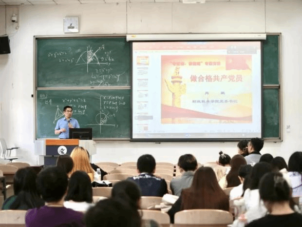 接下来,肖鹏书记通过“酒水定律”和“短板定律”,向同学们解释为什么要做合格的共产党员。这两个定律告诉我们,如果不重视自己的短板和不足,就很难避免“一杯污水坏了一桶酒” “一块短板拉低一个组织”等情况的发生。面对百年未有之大变局,我们必须时刻保持认真严谨的态度,从而坚守党的先进性和纯洁性。