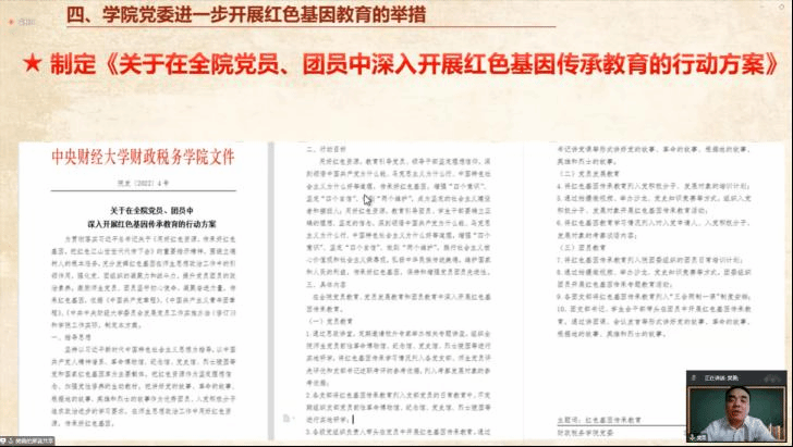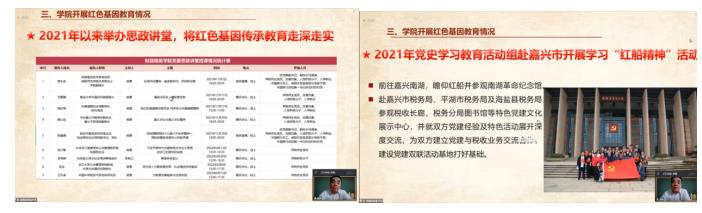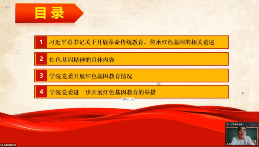 樊勇书记以《深入开展革命传统教育,将红色基因传承好》为题,作交流分享。在讲话伊始,樊勇书记首先介绍了必一运动和白家疃村的党组织情况。必一运动目前有23个党组织和420多名党员,白家疃村有100多名党员。他指出,在师生规模较大、党组织数量和党员数量较多的党组织体系中,财政税务公司党委依然把加强党的建设作为重要抓手。其中一个很重要的抓手就是红色基因传承教育,这也是公司党员学习教育和发展党员、团员等的主要工作。