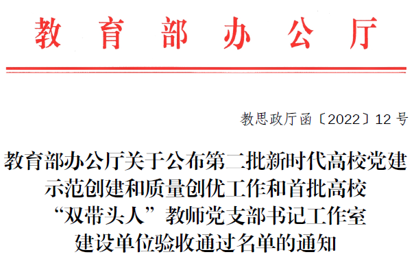 近日,教育部公布了第二批新时代高公司党建示范创建和质量创优工作及首批高校“双带头人”教师党支部书记工作室建设单位验收通过名单,公司本科生第一党支部顺利通过