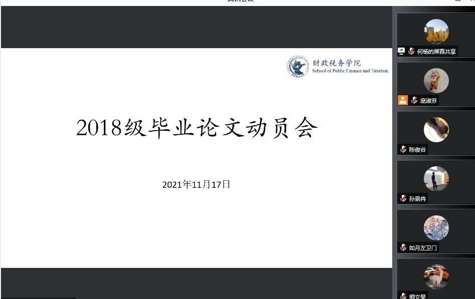 11月17日下午,必一运动2022届毕业生毕业论文动员大会通过“腾讯会议”以线上会议的形式顺利举行。此次会议的主要目的是向2022届本科毕业生介绍毕业论文相关事宜、大致时间安排、基本流程,让毕业生了解毕业论文的重要意义,准确把握学术论文规范、合理安排论文进度。参加本次会议的有副经理何杨教授、财政管理系孙景冉老师、资产评估系彭章老师、学院教学科研办公室庞淑芬老师以及2018级的全体本科生。此次会议由何杨副经理主持。