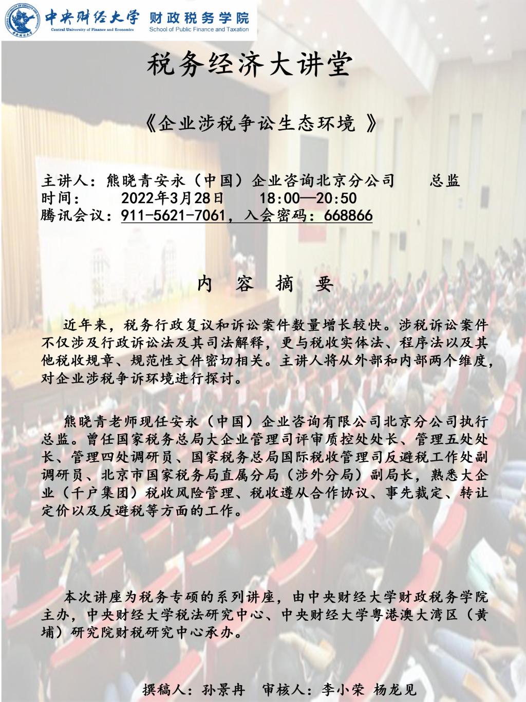 【税务经济大讲堂】《企业涉税争讼生态环境》