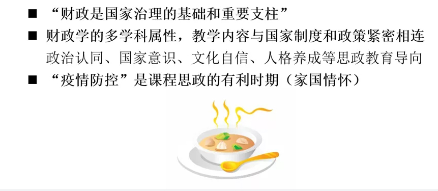 这学期,我结合学校推的“时雨课堂”,专门为员工讲了一个“疫情防控、财政支出和大国担当”的微课,也就是,在讲完支出之后帮同学们梳理一下,在疫情防控之下,我们前面所学过的财政支出的理论,和我们财政支出的实践,和我们财政支出中呈现的这个大国担当的这样的思想,是如何关联在一起的,从而将理论、实践和课程思政紧密结合在一起,就像李贞老师刚才说的那样。